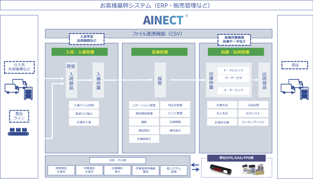 さらに、WMSソフト AINECT® と連携することで、たとえば以下を実現しやすくなります。